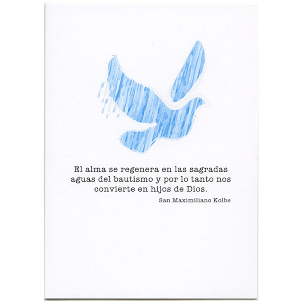 Mensaje en el interior de la tarjeta: "Te deseamos muchas bendiciones en el día de tu bautismo."