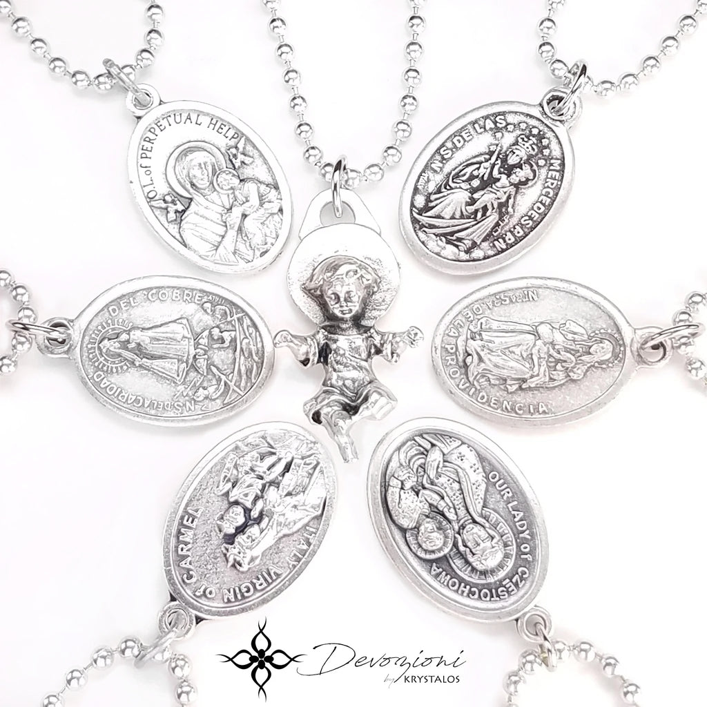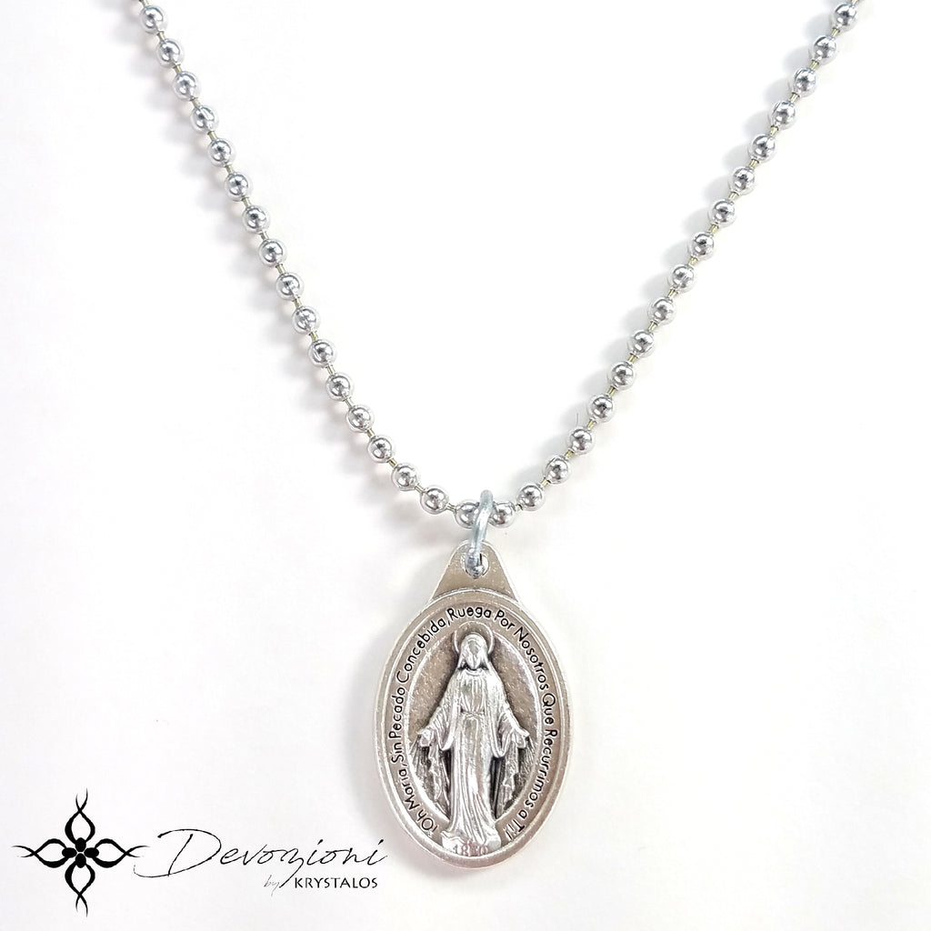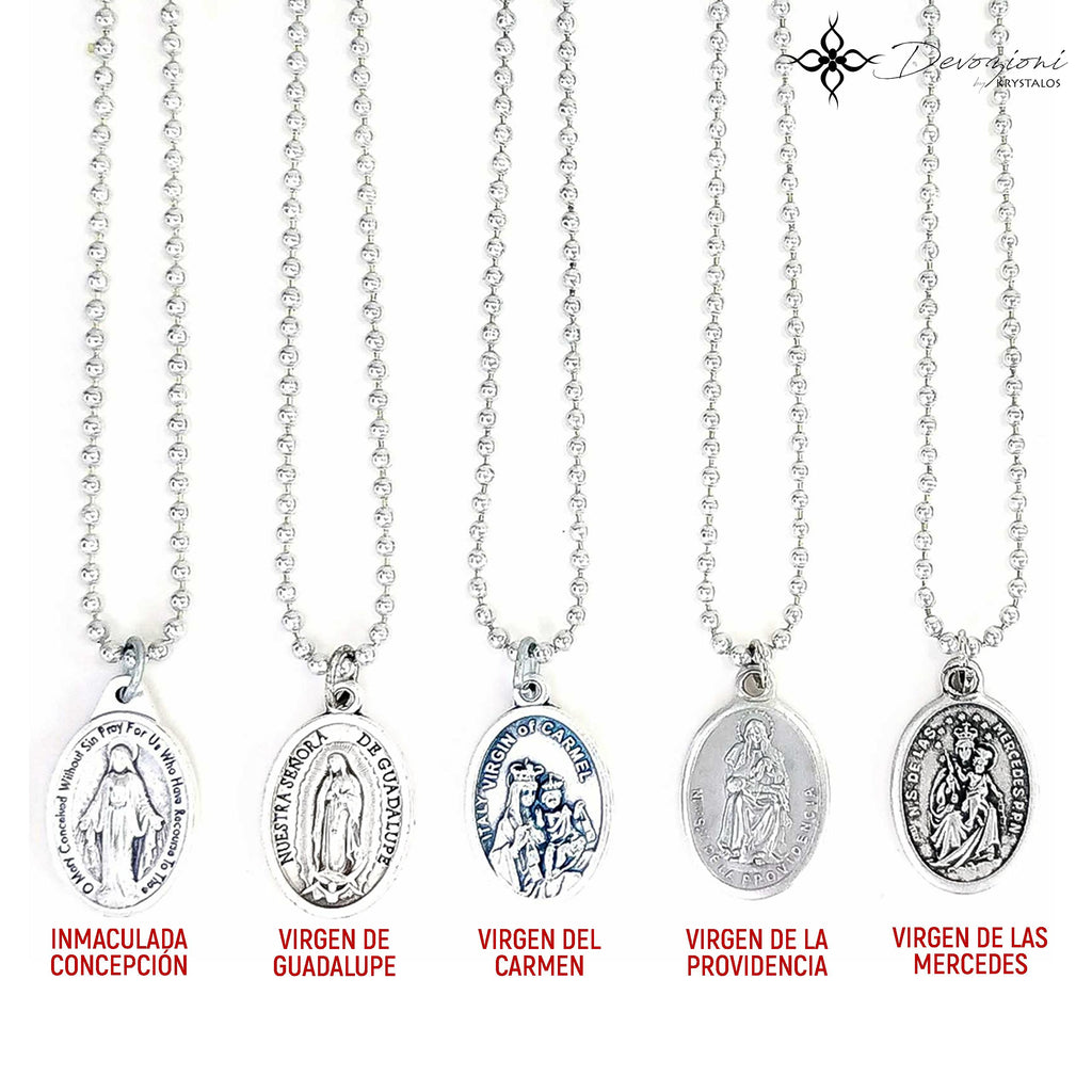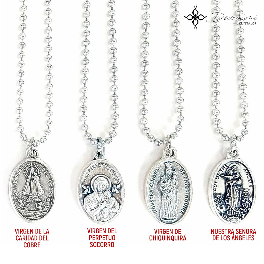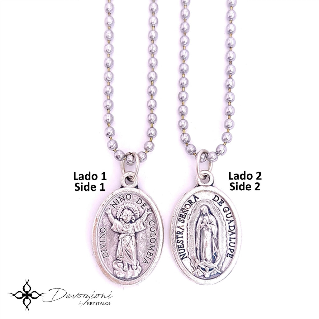 Collar medallero con medalla devocional italiana a escoger en 100% ZAMAC, en una cadena de aluminio tipo "ball chain" de 24" de largo y "ball diameter" de 3/32″.