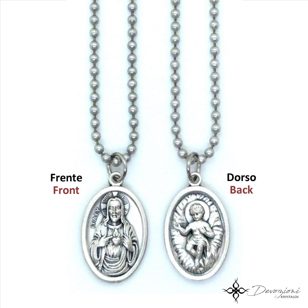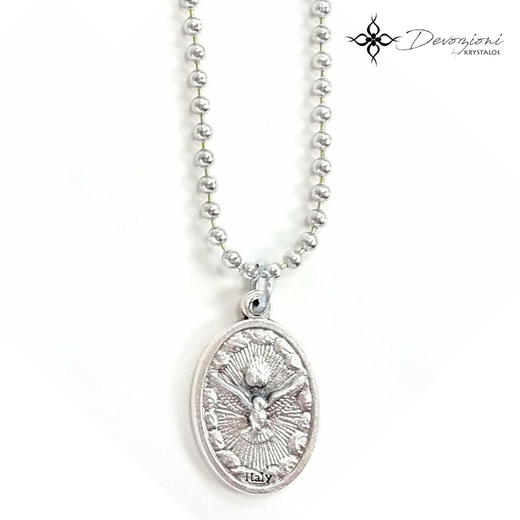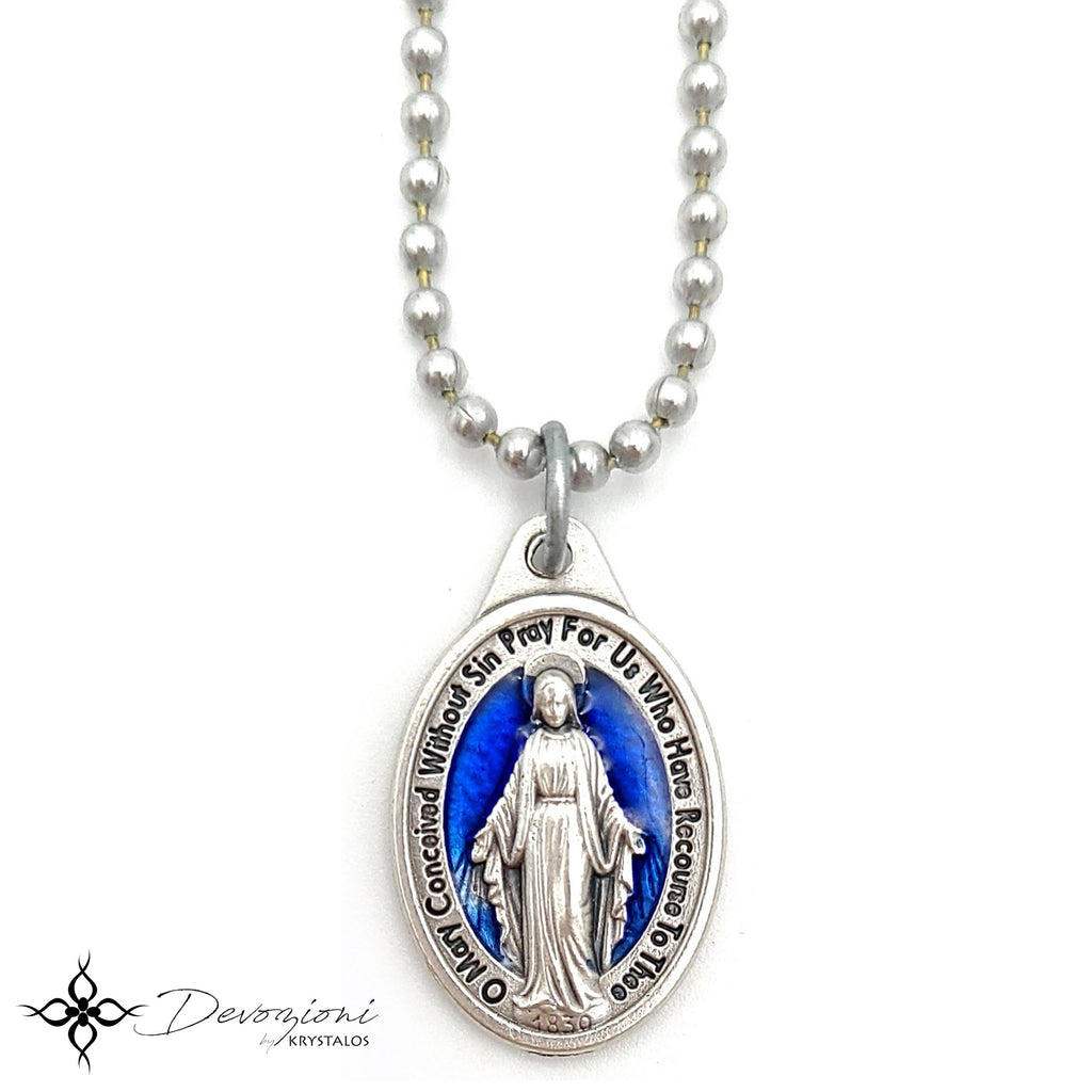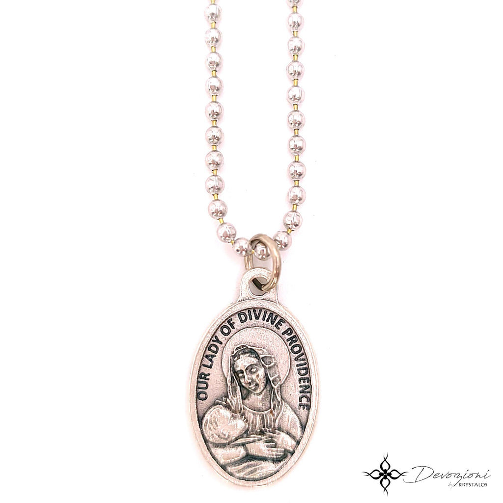 Collar medallero con medalla devocional italiana a escoger en 100% ZAMAC, en una cadena de aluminio tipo "ball chain" de 24" de largo y "ball diameter" de 3/32″.