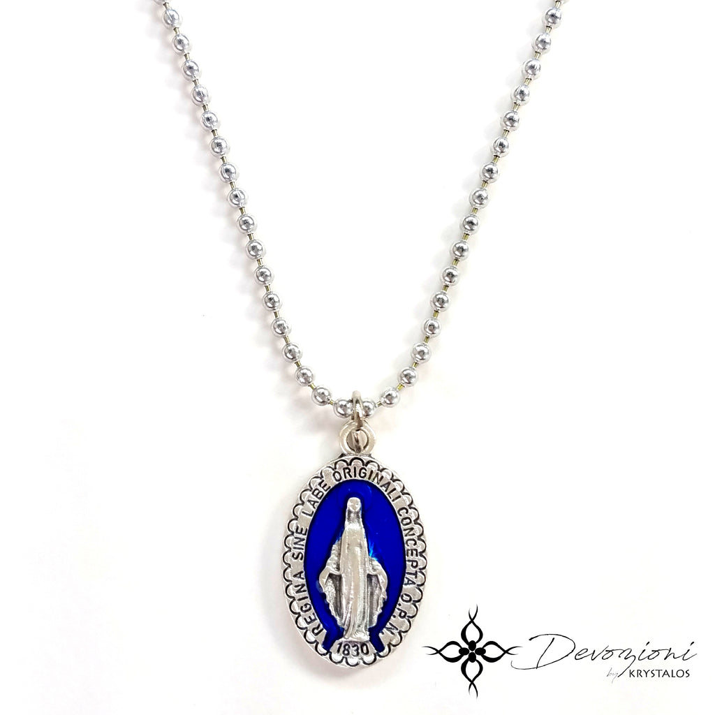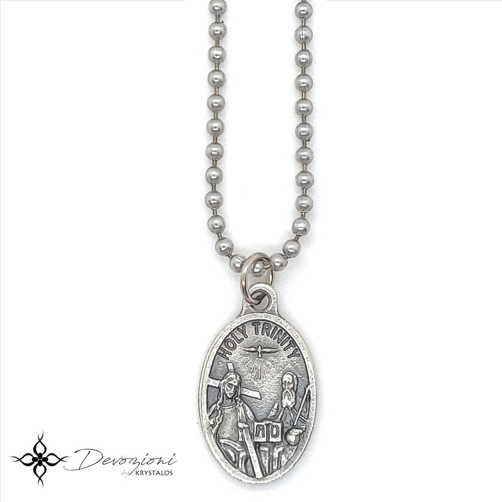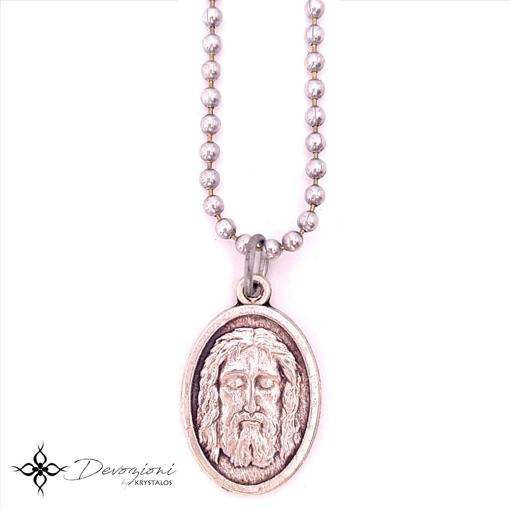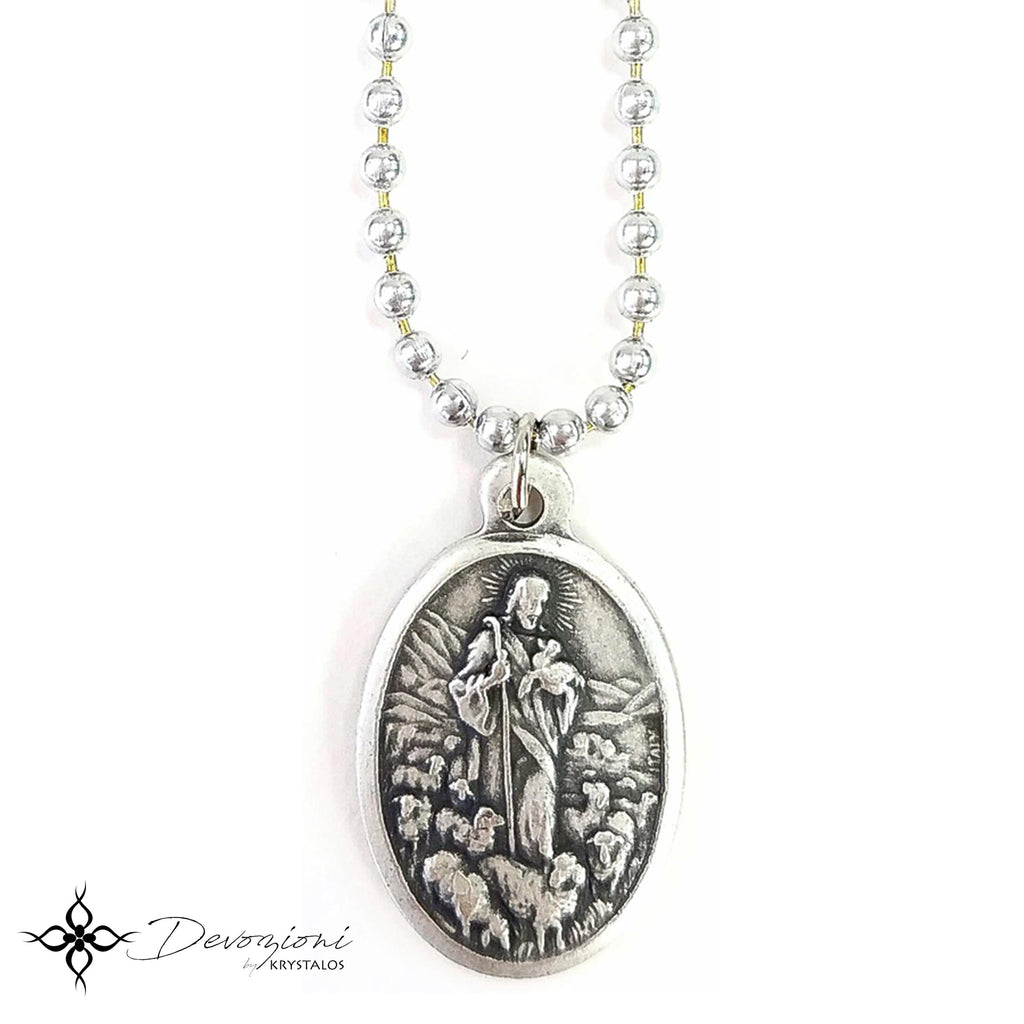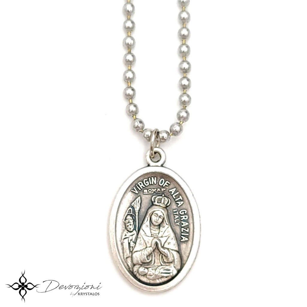Collar medallero con medalla devocional italiana a escoger en 100% ZAMAC, en una cadena de aluminio tipo "ball chain" de 24" de largo y "ball diameter" de 3/32″.