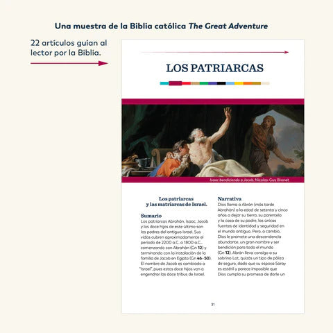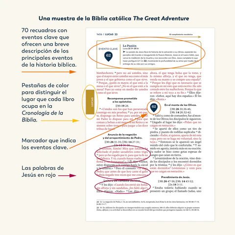 ¡Una Biblia católica que te enseña a leerla! No sólo lee la Biblia…entiéndela. Esa es la filosofía del Sistema The Great Adventure, que te simplifica la lectura de la Biblia, a la vez que se enfoca en que entiendas su línea histórica.