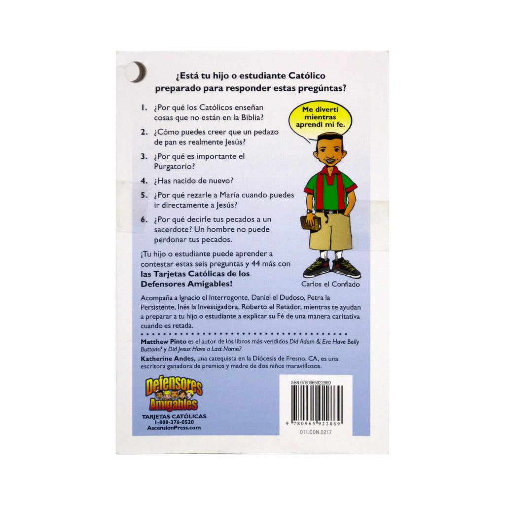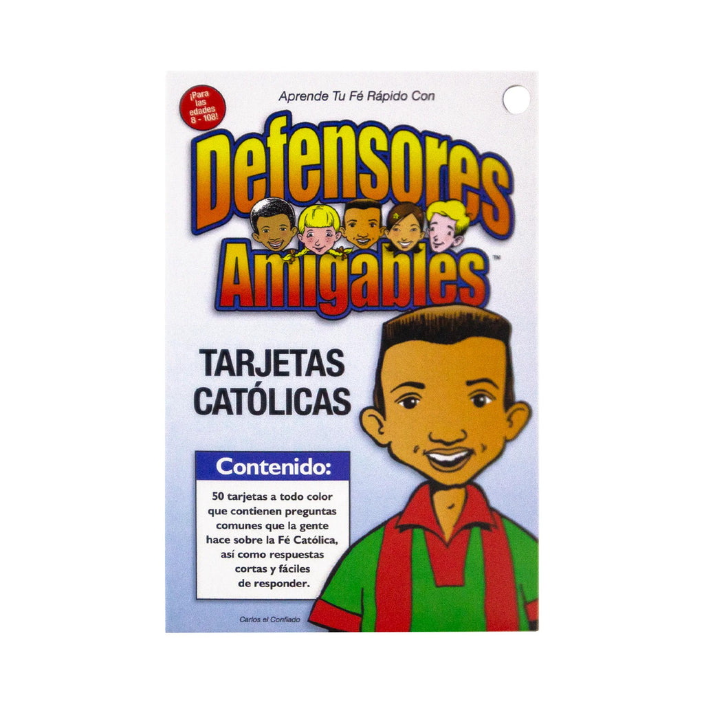 El mejor regalo que un padre o maestro puede darle a un niño es la comprensión firme y clara de la fe. Estas 50 tarjetas católicas ayudarán a tu hijo a comprender el amor de Dios y las verdades de la Iglesia católica. Las Tarjetas Católicas Defensores Amigables, enseñan a los niños las respuestas a las preguntas más frecuentes sobre Dios, Jesús, la Biblia, la Iglesia católica, la vida eterna y más. Aportan respuestas cortas y concisas a preguntas comunes sobre la fe católica. Cada tarjeta incluye un verso inspiracional y una lista de versículos de la Biblia y secciones del Catecismo de la Iglesia Católica. Empieza hoy a formar una base sólida y enraizada en la fe. Para edades de 6-12 años.