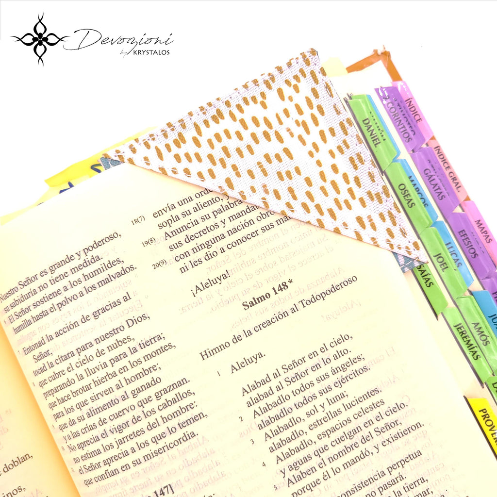 Estos marcalibros de esquina en textil poly-canvas fácil de limpiar son un accesorio elegante y funcional para todas tus necesidades de lectura. Hecho con materiales de alta calidad, este marcador está diseñado para mantener tu lugar en tu libro favorito o en tu Biblia, asegurando que nunca pierdas tu posición nuevamente.