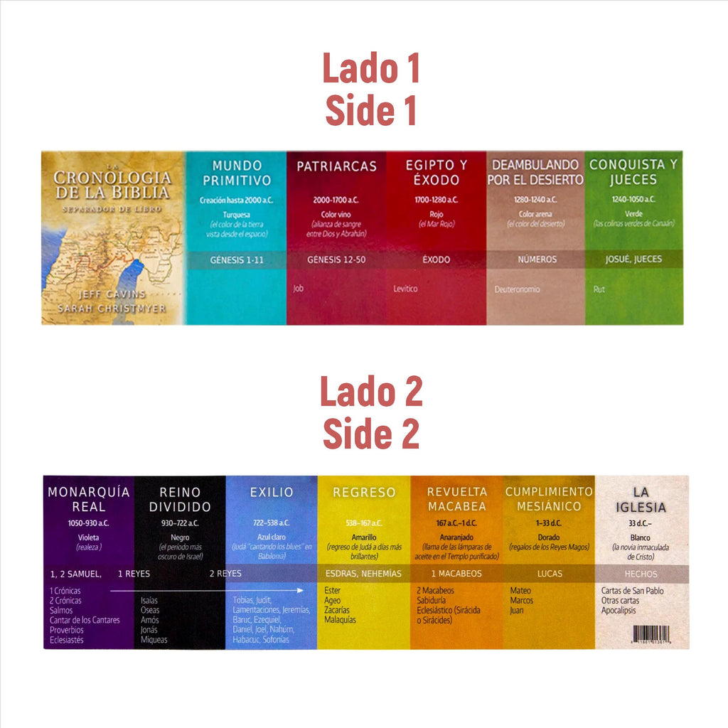 El Marcador de libros de la Cronología de la Biblia (Bible Timeline) arregla los libros de la Biblia en 12 períodos codificados por color, y ilustra cómo todos encajan para contar la historia de la salvación. Este Marcador de libros es una version condensada del gráfico de la Cronología de la Biblia, que es la piedra angular del programa de los estudios de la Biblia La Gran Aventura (Great Adventure). ¡Es una referencia rápida y sencilla para marcar tus lecturas y complementar tu Great Adventure Bible!