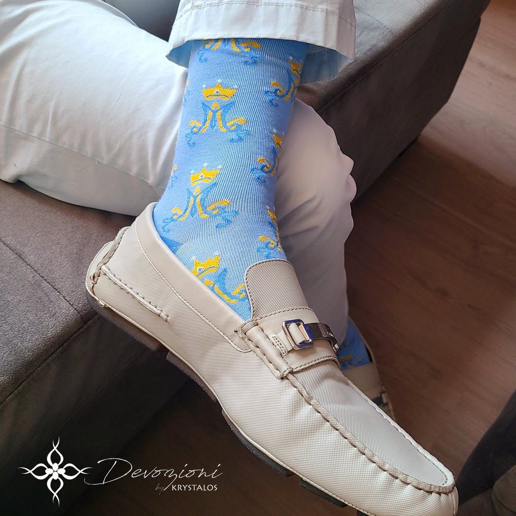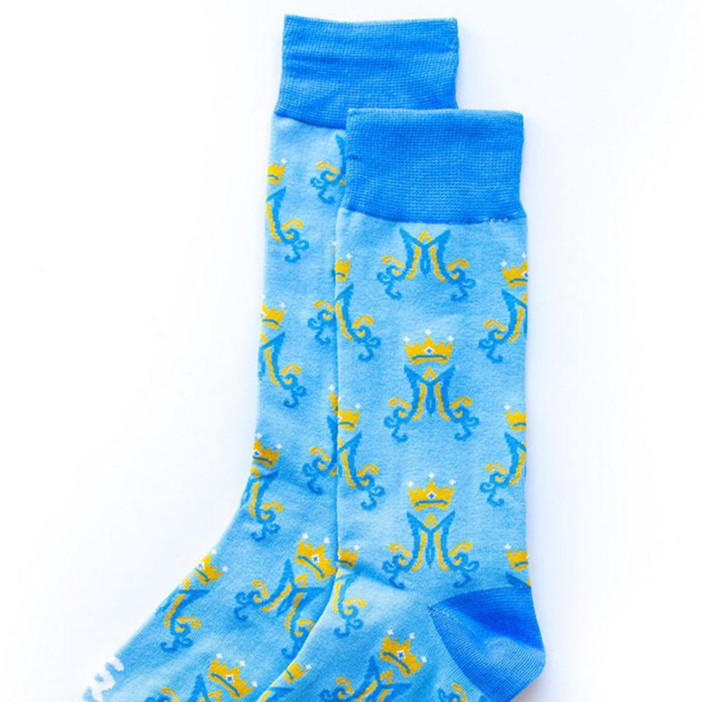 Estos calcetines unisex hacen honor al símbolo mariano “Auspice Maria”, que en latín significa “Bajo la Protección de María”.