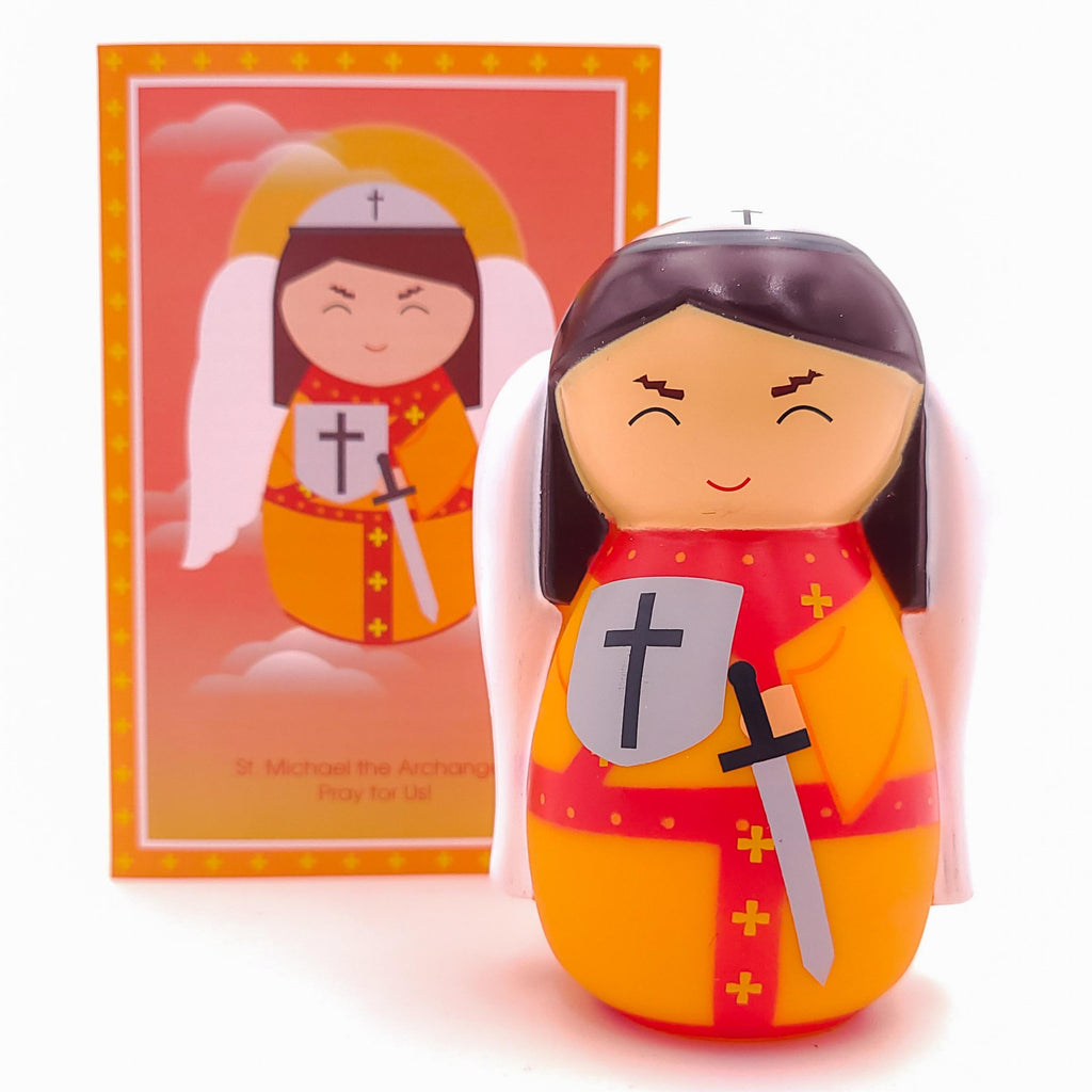 Conoce la historia de San Miguel Arcángel, gran guía y protector en las batallas de nuestra vida diaria, a través de esta hermosa figura que, además de ser atractiva, colorida y muy decorativa, te educa sobre la vida de nuestro querido Arcángel.