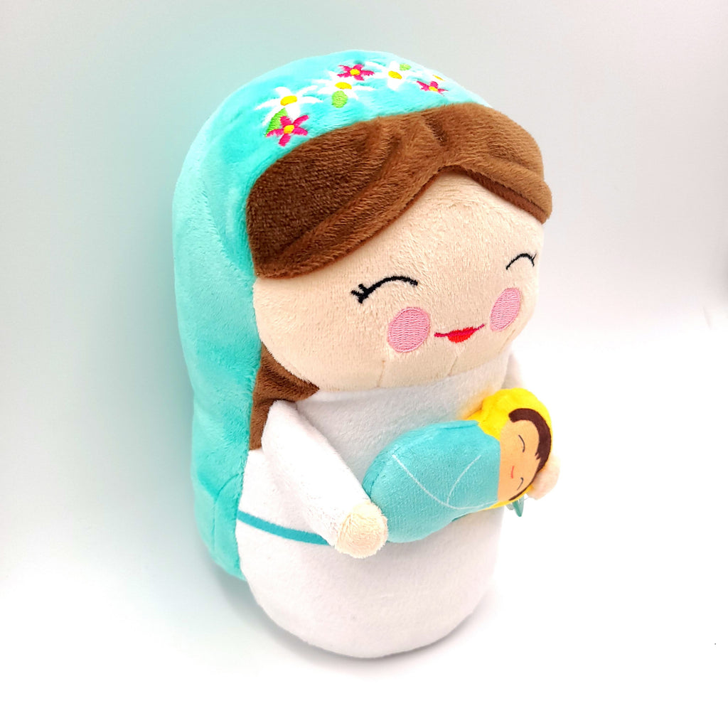 El peluche de la Virgen María y el Bebé Jesús es hecho a mano, y cuenta con hermosos detalles delicadamente bordados. Incluye una pequeña tarjeta informativa. ¡Regalo espectacular para todas las edades de 3 en adelante!