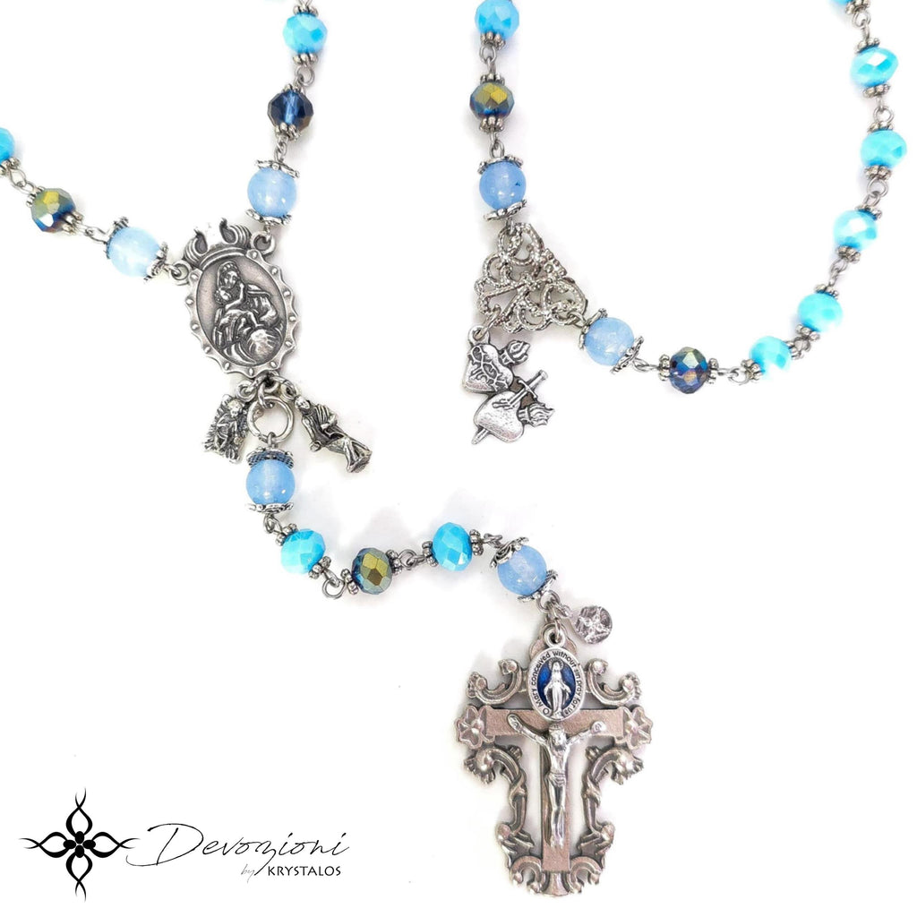 Rosario María Nuestra Reina en Cristales, Jades, Medallas Italianas y Stainless Steel
