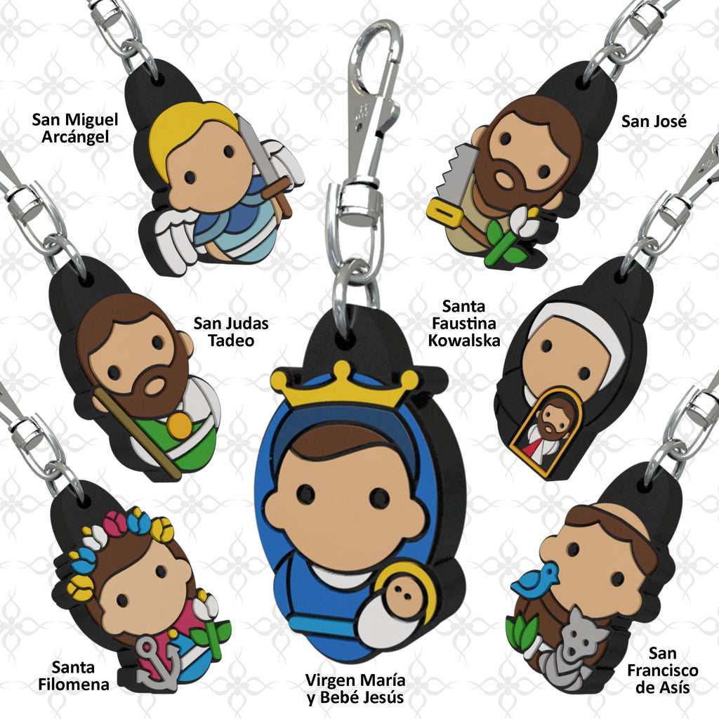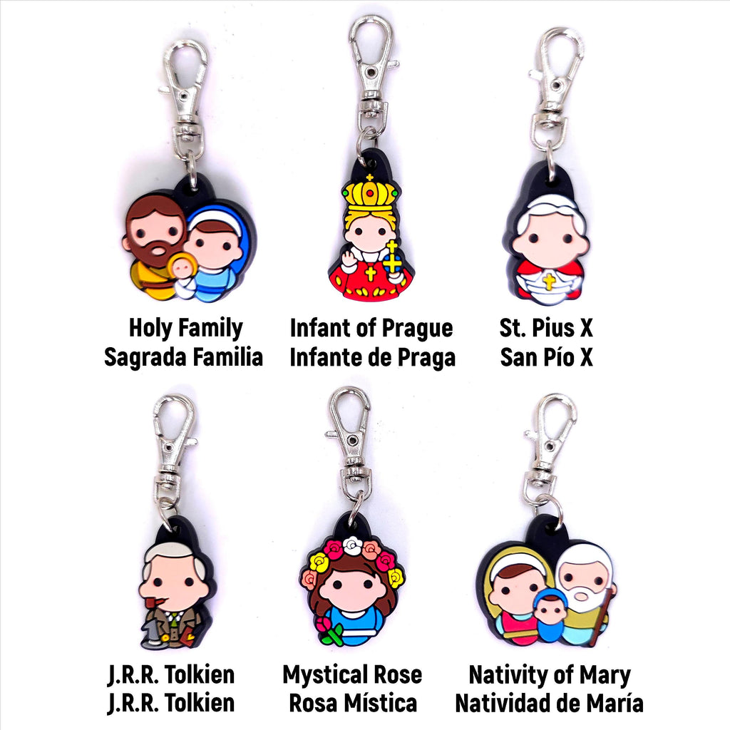 Multi-Use Devotional Charms. Choose your favorite devotions! Take them with you in your bag, in your backpack, on your keychain... wherever you want! Make your own collection of devotions and share the joy of Faith with your loved ones. (Average total length: 2". Average figurine length: 1")