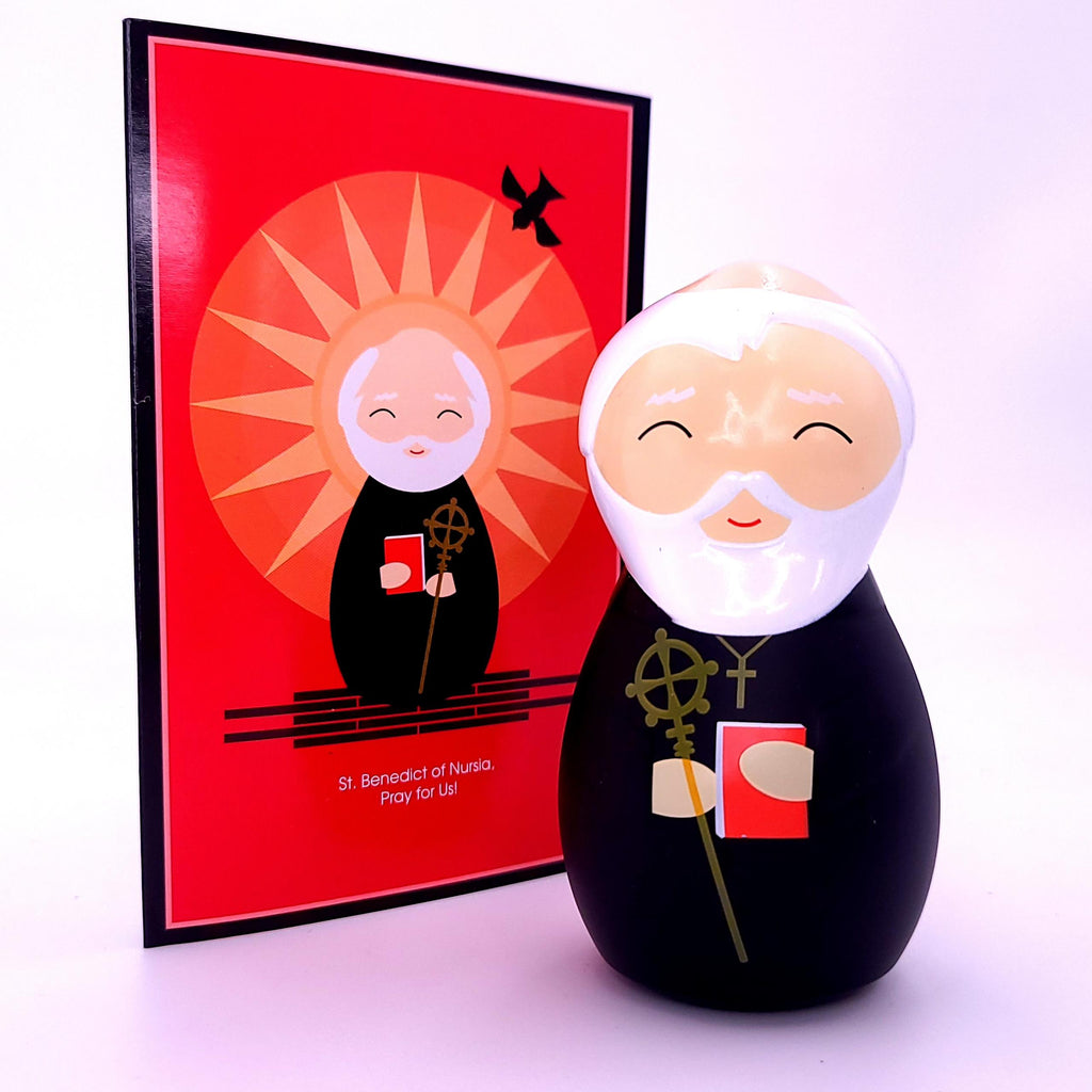 Conheça a história de São Bento, padroeiro da Europa, dos engenheiros civis e protetor contra o mal , por meio desta bela figura que, além de atraente, colorida e altamente decorativa, ensina sobre a vida do Santo.