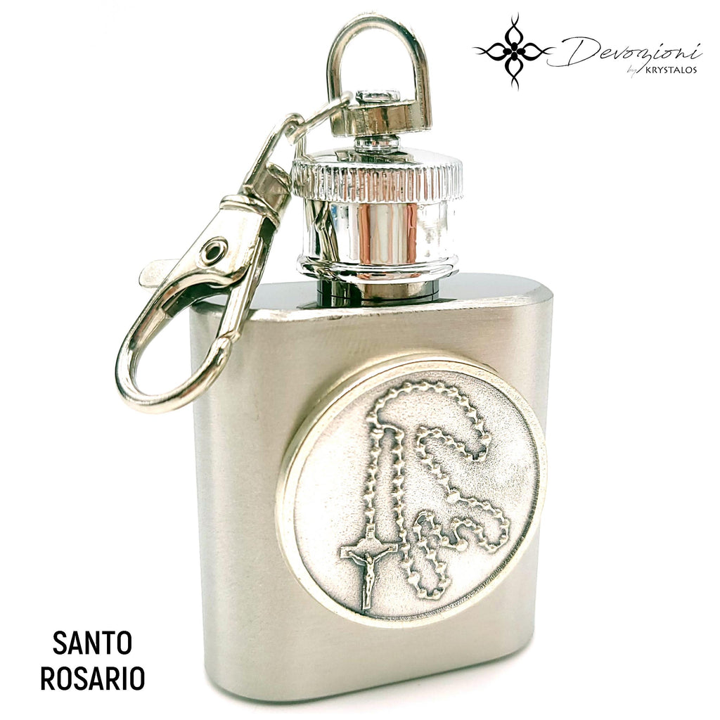 Este frasco para Água Benta, Óleos Bentos ou Sal Bento nos permite transportar nossos sacramentais convenientemente. Inclui uma tampa de plástico cromada para garantir um encaixe seguro com a garrafa de “aço inoxidável” e tem um prático clipe de bolsa. Capacidade para 1 oz de água benta, óleos sagrados ou sal abençoado. Lindos relevos de diferentes devoções para escolher.